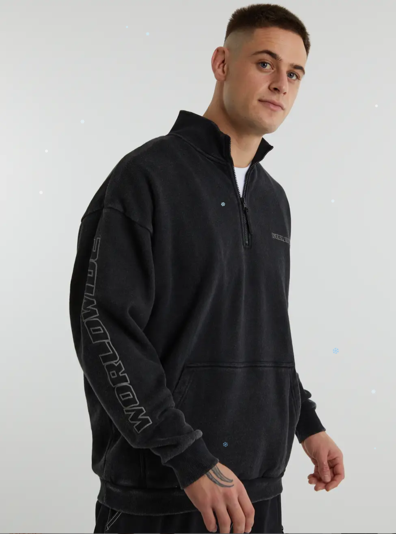 WORLDWIDE ZIP UP OVERSIZED SWEAT IN WASHED BLACK